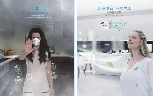 廚房作為家中空氣流通最差的地方,時常縈繞著一股散不去的油煙味、廚余味…針對這樣的情況,板川研發了帶有空氣置換的安全集成灶,可以通過負離子發射凈化3個立方的空氣,讓廚房空氣清新,更健康。
