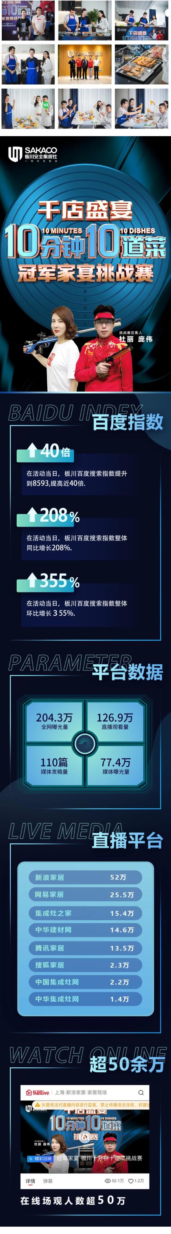 10月告捷,11月乘勝追擊。10分鐘10道菜冠軍家宴挑戰賽第二季,板川將繼續秉承匠心,在產品、渠道、品牌的路上繼續精進,將“安全智尚廚房”的目標延伸拓遠。集成廚房時代,持續領跑的板川將繼續乘風破浪。