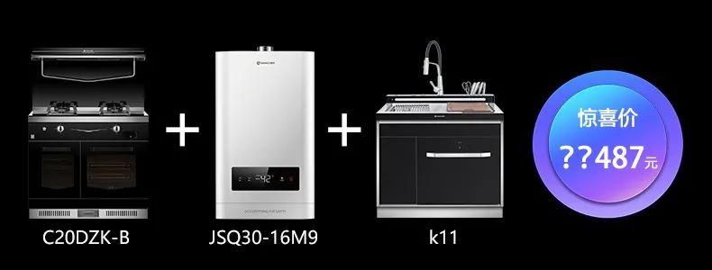 訂購C20DZK-B集成灶+JSQ30-16M9燃氣熱水器+K11洗碗機款集成水槽享受驚喜價??487元!