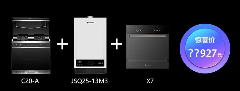 訂購C20-A集成灶+JSQ25-13M3燃氣熱水器+X7嵌入式洗碗機享受驚喜價??927元!