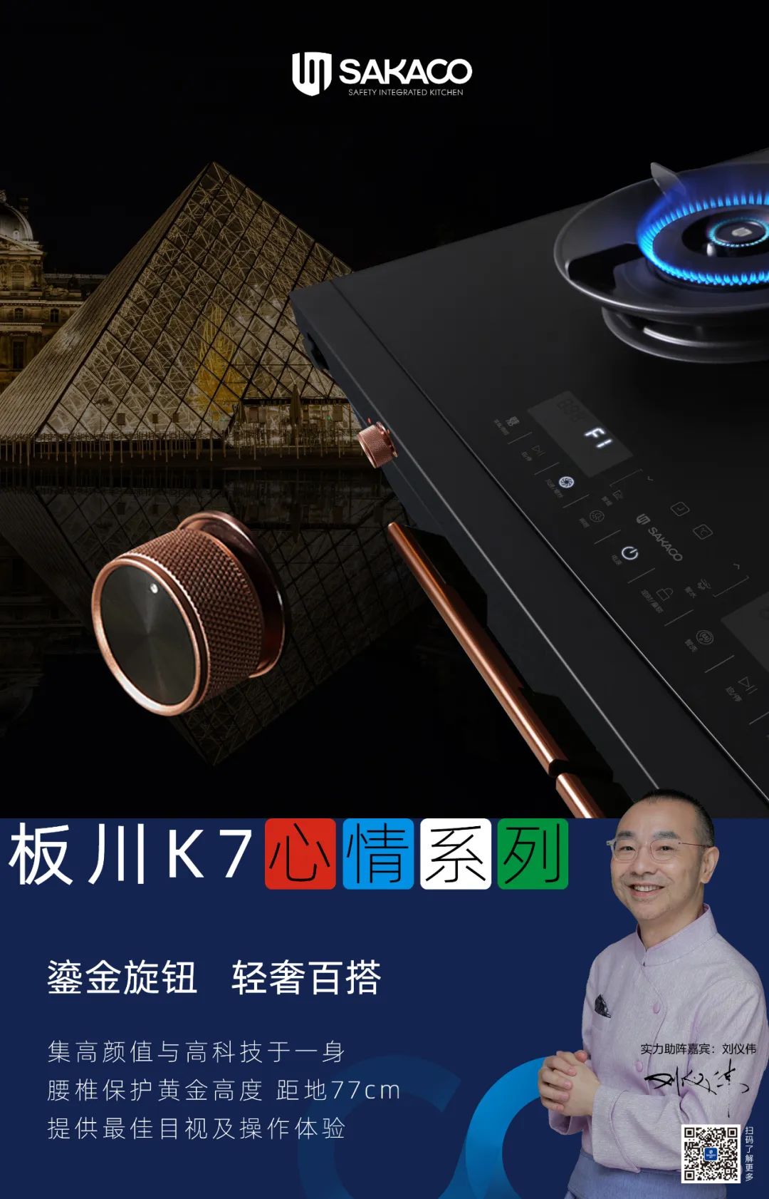 定位板川集成灶系列的性能旗艦 多項新技術首發 更有多項黑科技體驗突破 開啟廚房烹飪新篇章! 板川 K7 心情系列有多優秀 一起來看看吧~ 柔性大屏四色面光源 板川 K7 心情系列創新突破0.2㎡柔性面光源系統,智能體感科技,毫米級感應,輕輕一揮,紅、綠、藍、白四色瞬間切換,色彩均勻,烹飪照明更護眼,創新科技與感官體驗的完美融合。 AI數字智煙系統 板川 K7 心情系列新品搭載新一代煙霧流量感應模組,紅外線雙鏡頭實時監測烹飪煙霧流量大小,智能感應自動調節吸煙功率,帶來強悍性能體驗,烹飪中享受演奏家式的吸煙旋律,讓下廚猶如聆聽一場音樂會。 顏值為王,輕奢百搭 全新板川 K7 心情系列硬核科技之外,結合現代美學風尚,打造輕奢風格,鎏金旋鈕人性化不彎腰打火設計,距地77cm,腰椎保護黃金高度,待機、點火、泄露,3種可視燃燒狀態,設計不止于美。 好價優先享,好貨提前搶 ↓↓↓ 板川K7即日起接受預定 限量100臺 點擊下方“閱讀原文” 獲取更多旗艦配置及訂貨細則