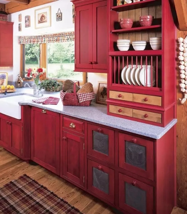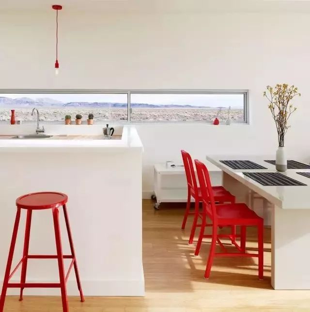 紅色,一個獨特而非凡的顏色,是日光和夜光中最為亮眼的顏色,猶如熊熊烈火一樣,永遠給予我們無窮的力量,使我們對生活充滿勇氣和信心。比如,一間紅色的餐廳,或是一間紅色的廚房,會使用餐的人胃口大增。當然,你也可以將紅色用在廚房用具或是布景或是家里其他地方,讓廚房喜慶而充滿熱情。