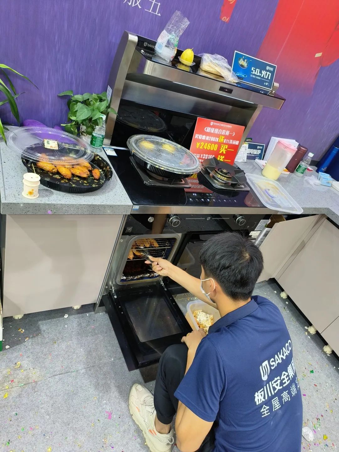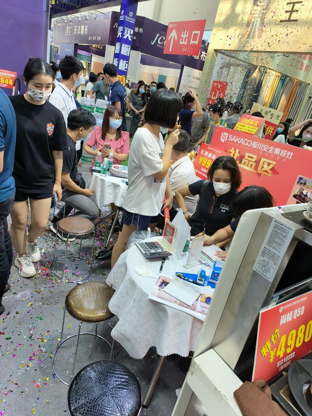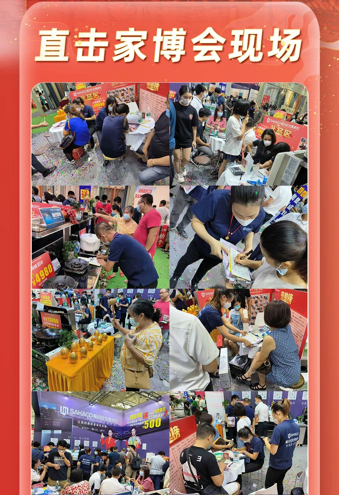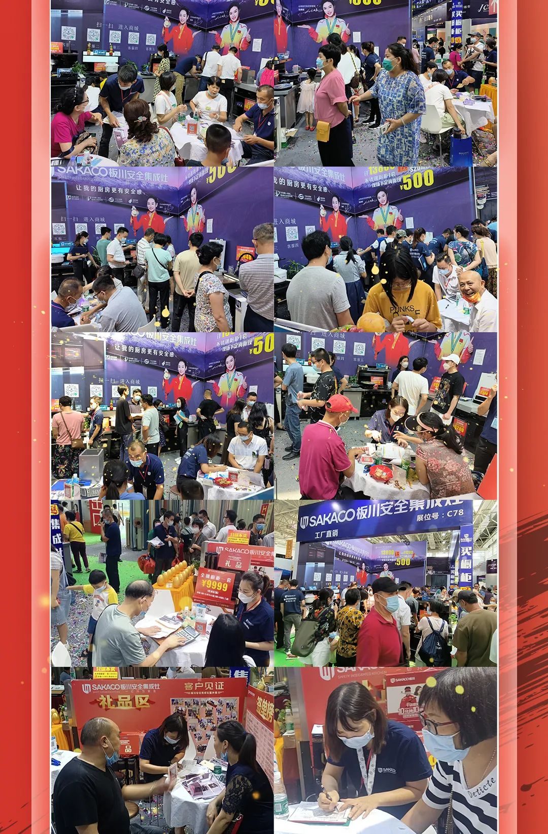 一線的家人們在現場不停地用板川安全集成灶制作點心、美食,用產品“硬實力”吸引展會客流,全方位展示板川安全集成灶的功能、特點,現場客流絡繹不絕,訂單“川”流不息。