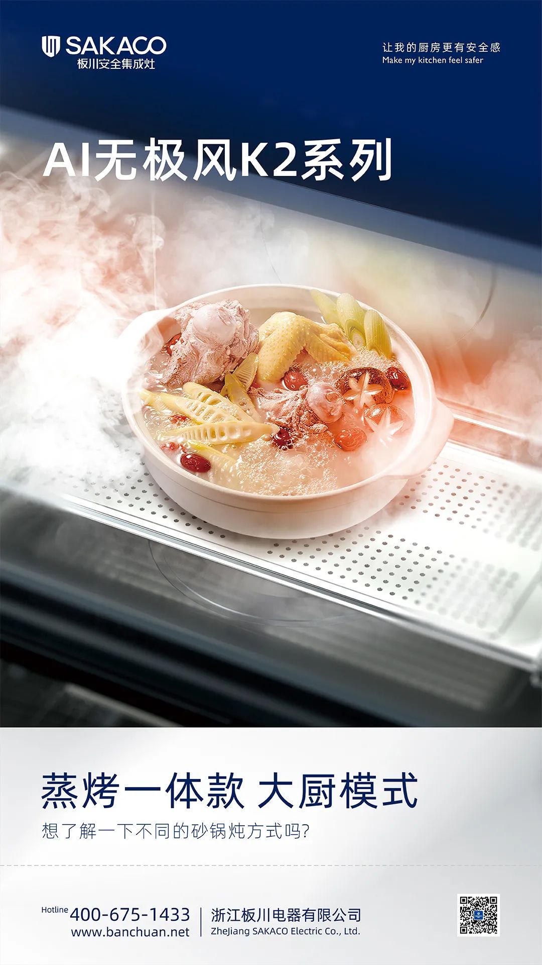 為賦予用戶更簡單、快捷、自由的廚房生活,板川通過獨立蒸烤的產品設計以及“大廚模式”的功能設計,徹底打破時間的桎梏。其中大廚模式可做到多段位的復雜工序使用,可同時使用無縫銜接,烹飪一步到位。比如烤豬蹄,板川K2可做到蒸熟、食材脫油、烤制一步到位,省心省力,美味翻倍。