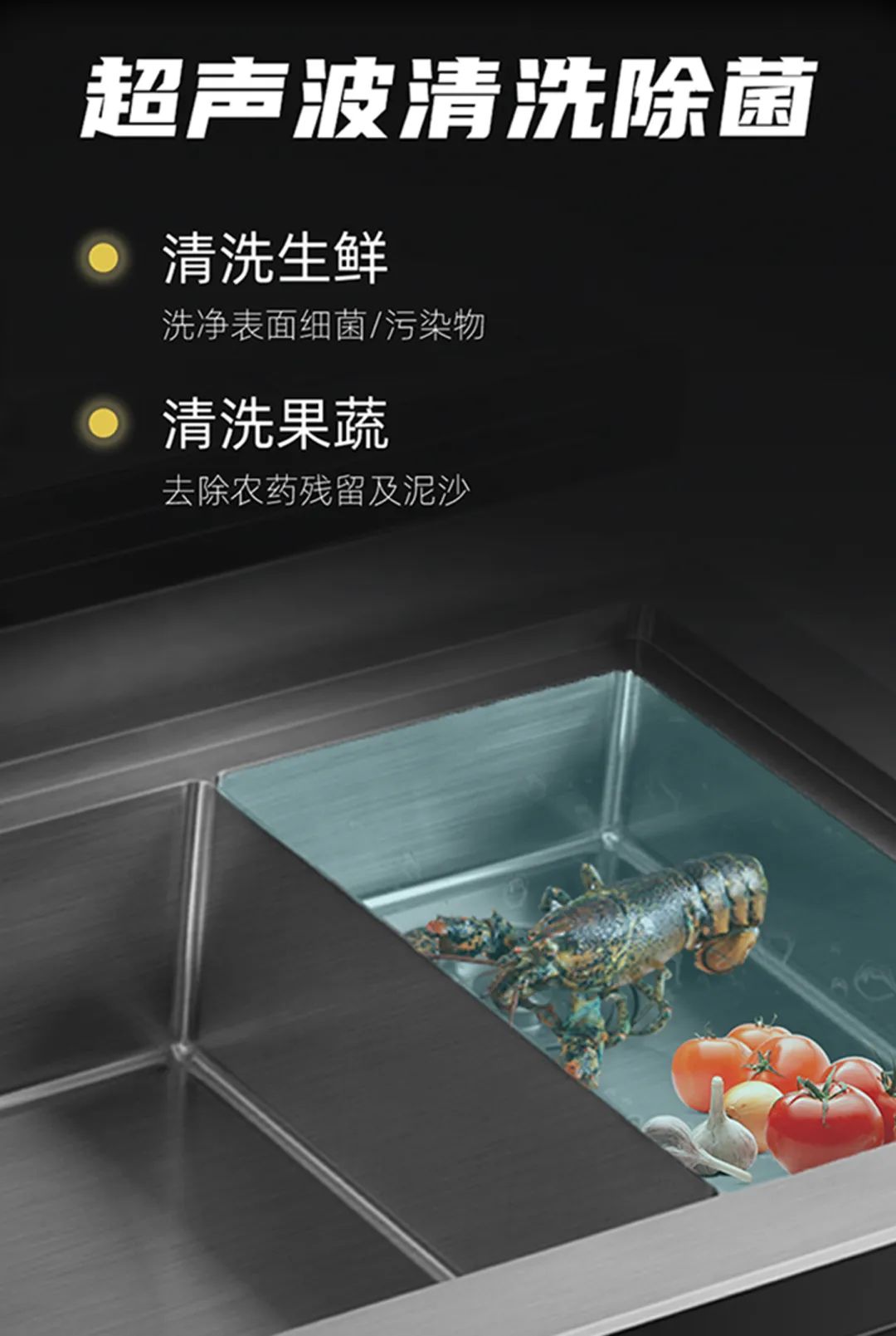 304不銹鋼食品級材質的大容量集成內槽搭配超聲波清洗,高效去除果蔬農殘和海鮮泥沙,入口更放心。