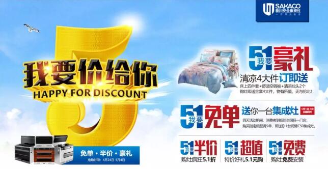 時(shí)值五一國(guó)際勞動(dòng)節(jié)期間,正是購(gòu)置嫁妝的好時(shí)節(jié)!板川安全集成灶“我要價(jià)給你”五一促銷全面開(kāi)啟!板川安全集成灶“五一”歡樂(lè)購(gòu),全場(chǎng)5.1折,全國(guó)聯(lián)動(dòng)!只為你來(lái)取!
