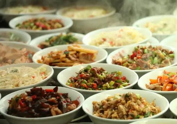 3、注意分層擺放:淡色菜放在上面,深色菜放在下面,不易熟的菜放在上面,易熟的菜放在下面。