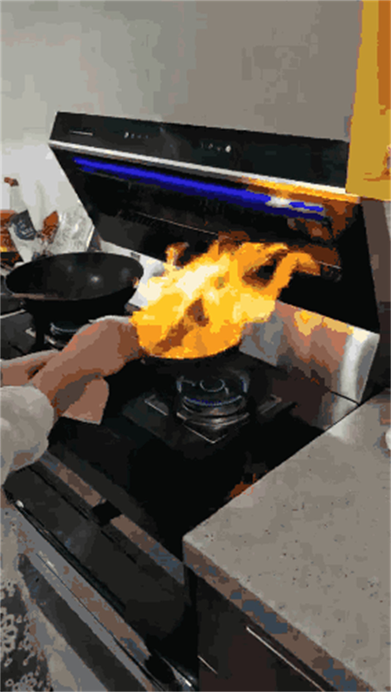但板川安全集成灶擁有防火墻功能,可以在油鍋起火的第一時間自動切斷電源、氣源來保障廚房安全。