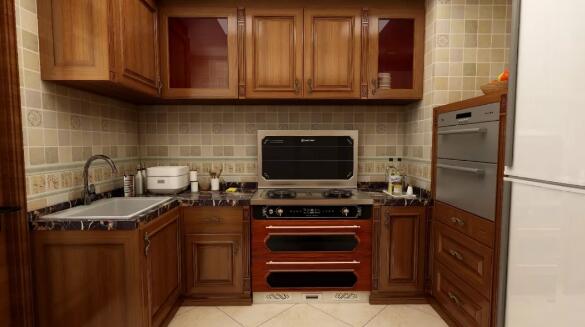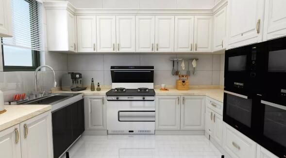 對于廚房空間較大的家庭,可以做U型廚房。三面墻都可以做儲物柜,收納功能強(qiáng)大。并且可容納多人下廚,輕松搞定美味大餐。