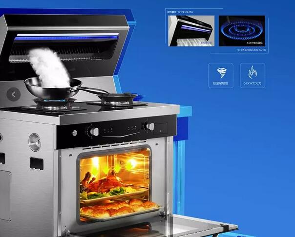 在這里小編推薦板川“智膳寶”,這個將油煙機、灶具、蒸箱、烤箱、消毒柜集于一體的安全集成灶,大幅度減少了電器占據的廚房空間。
