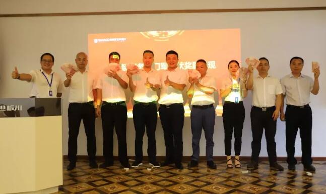 2019年7月6日,浙江板川電器有限公司就“板川電器2019年中大促總結表彰大會”在司召開,公司董事長宋明亮先生、總裁辦公室常務副總裁張維敏先生、總裁辦公室副總裁張凱先生、各中心部門長、及各司骨干參與了本次表彰大會。