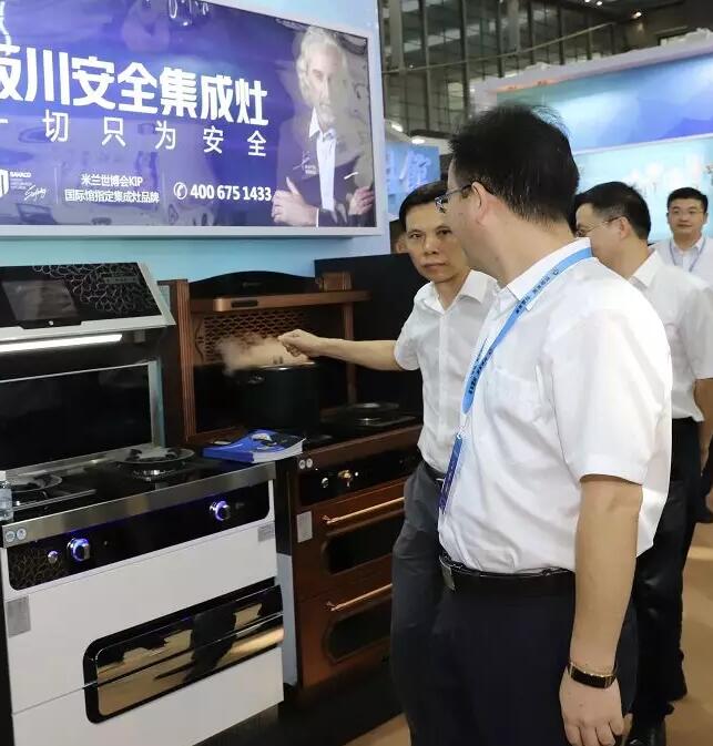 在紹興特色工業(yè)產(chǎn)品展館里,板川安全集成灶憑借著出色的外觀(guān),卓越的性能吸引了市政府領(lǐng)導(dǎo)一行的注目!并在現(xiàn)場(chǎng)體驗(yàn)了板川安全集成灶安全功能,聽(tīng)取安全集成灶的功能特色及品牌介紹。
