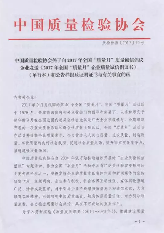 2017年9月是我國第40個全國“質量月”。我國“質量月”活動始于1978年,是在我國政府相關主管部門的倡導和部署下,以多種形式于每年的9月在全國范圍內動員全社會尤其是廣大企業積極參與,長期組織開展的一項重大質量活動和群眾性質量主題活動。意在提高全民產品質量的追求,提升國家質量競爭力,推進建設質量強國。