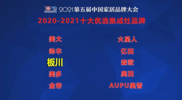 浙江板川電器有限公司憑其硬核的品牌影響力榮獲“2020-2021十大優選集成灶品牌”稱號。