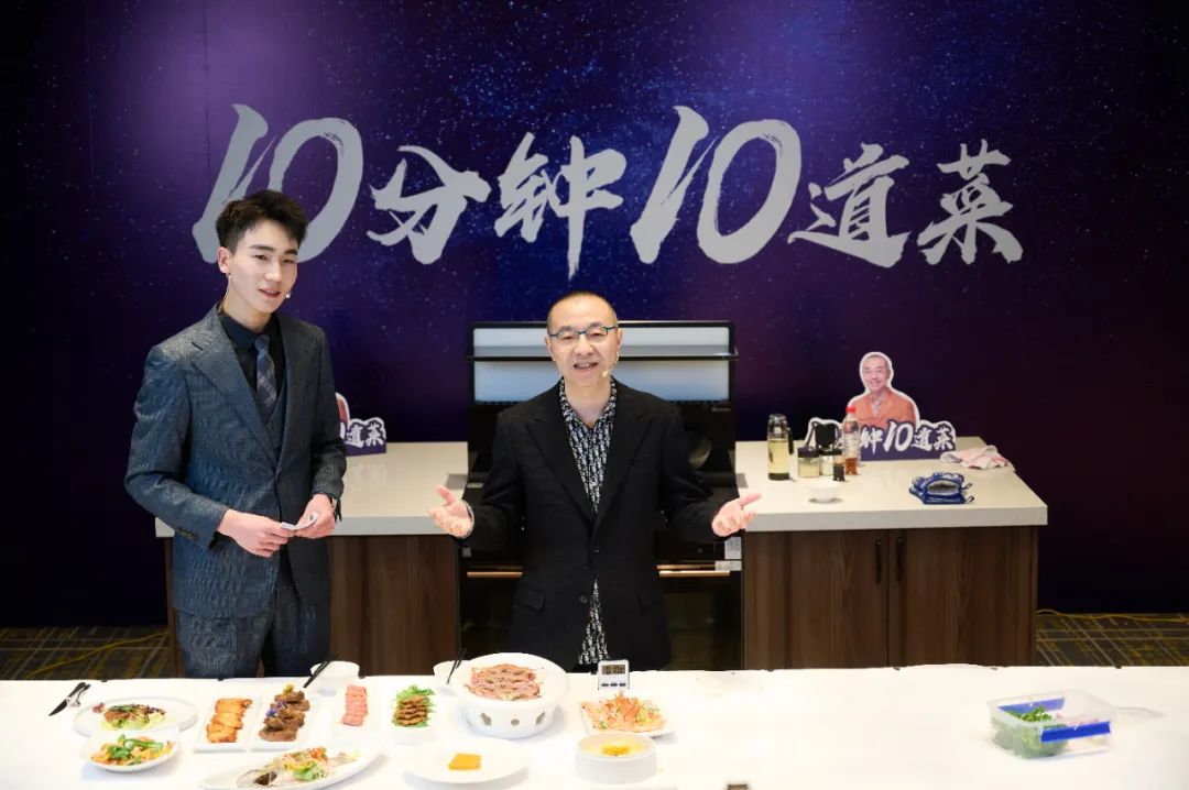在現(xiàn)場(chǎng)搭載的實(shí)景廚房中,美食大咖劉儀偉著正裝炒菜,完全不用擔(dān)心衣服、手等被油煙污染,這份優(yōu)雅和自信來(lái)自K7蒸烤獨(dú)立集成灶AI數(shù)字智煙系統(tǒng)。