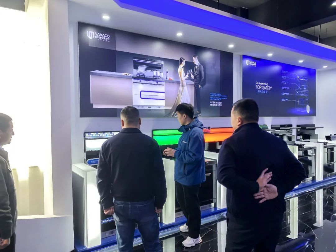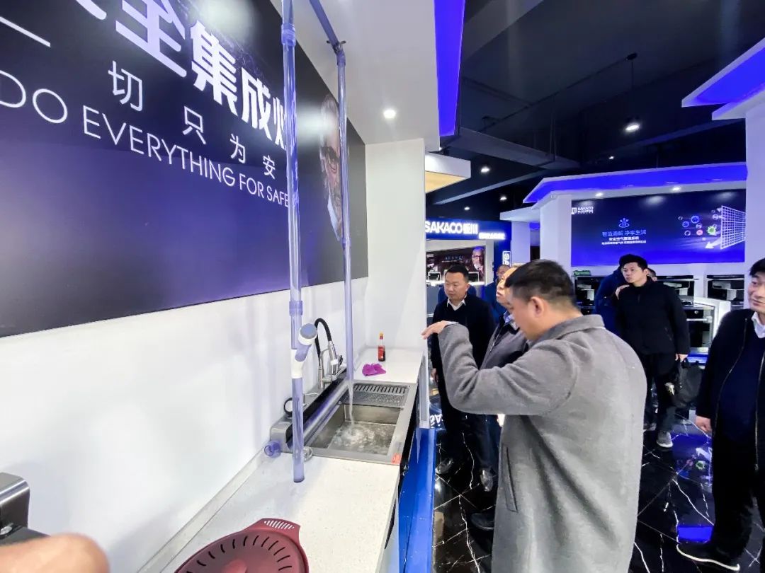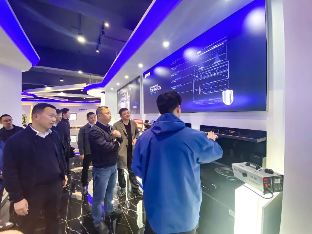 參觀展廳期間,屠書記一行對板川核心產品關注頗多,并直觀感受了板川的強勢產品。K7、K2系列集成灶,AI數字智煙系統、四色面光源、燃氣感應裝置、模塊化設計等產品差異化優勢讓考察團切實地感受了板川集成安全廚房產品的魅力所在。